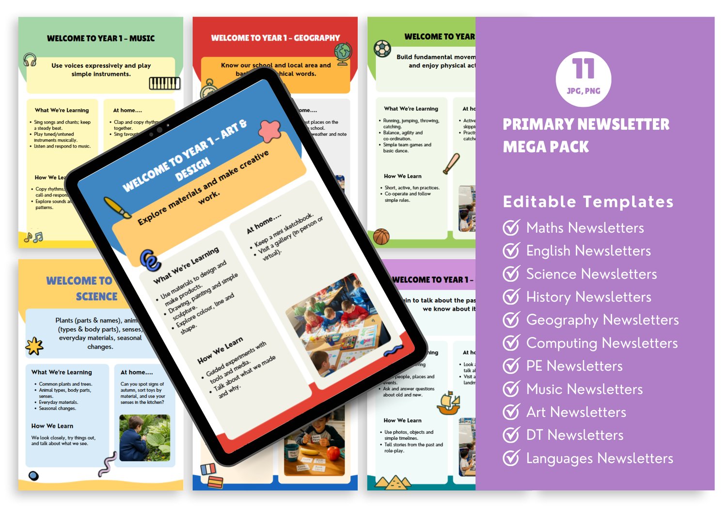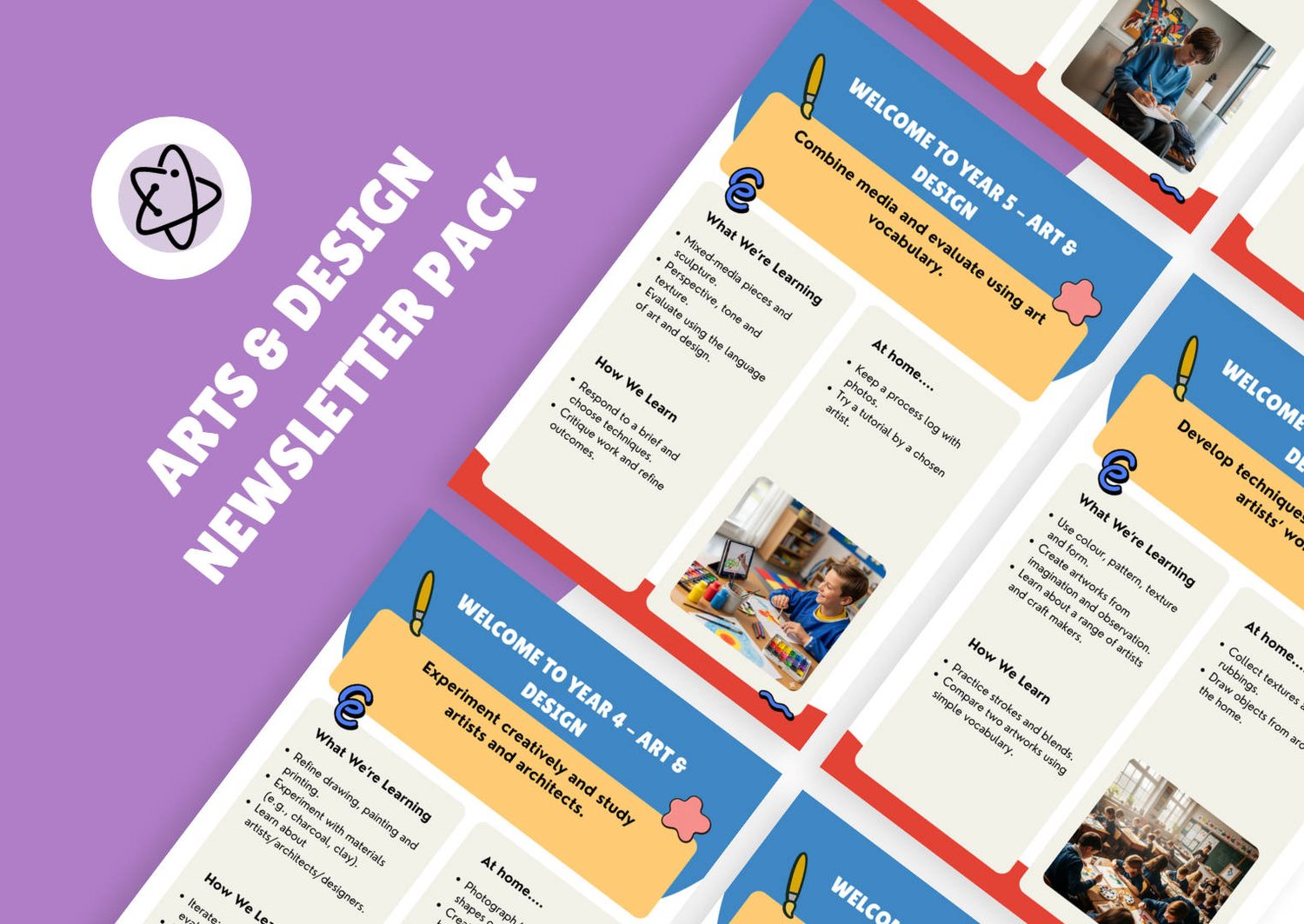 A complete Art & Design curriculum overview from Year 1 to Year 6, formatted as professional parent-facing newsletters. Each year group gets a clear summary of topics, skills and vocabulary their children will cover. Fully editable so you can adapt to your school's curriculum sequence. Reduces parent queries and demonstrates curriculum transparency for Ofsted. Created by an award-winning educator trusted by 100+ schools.