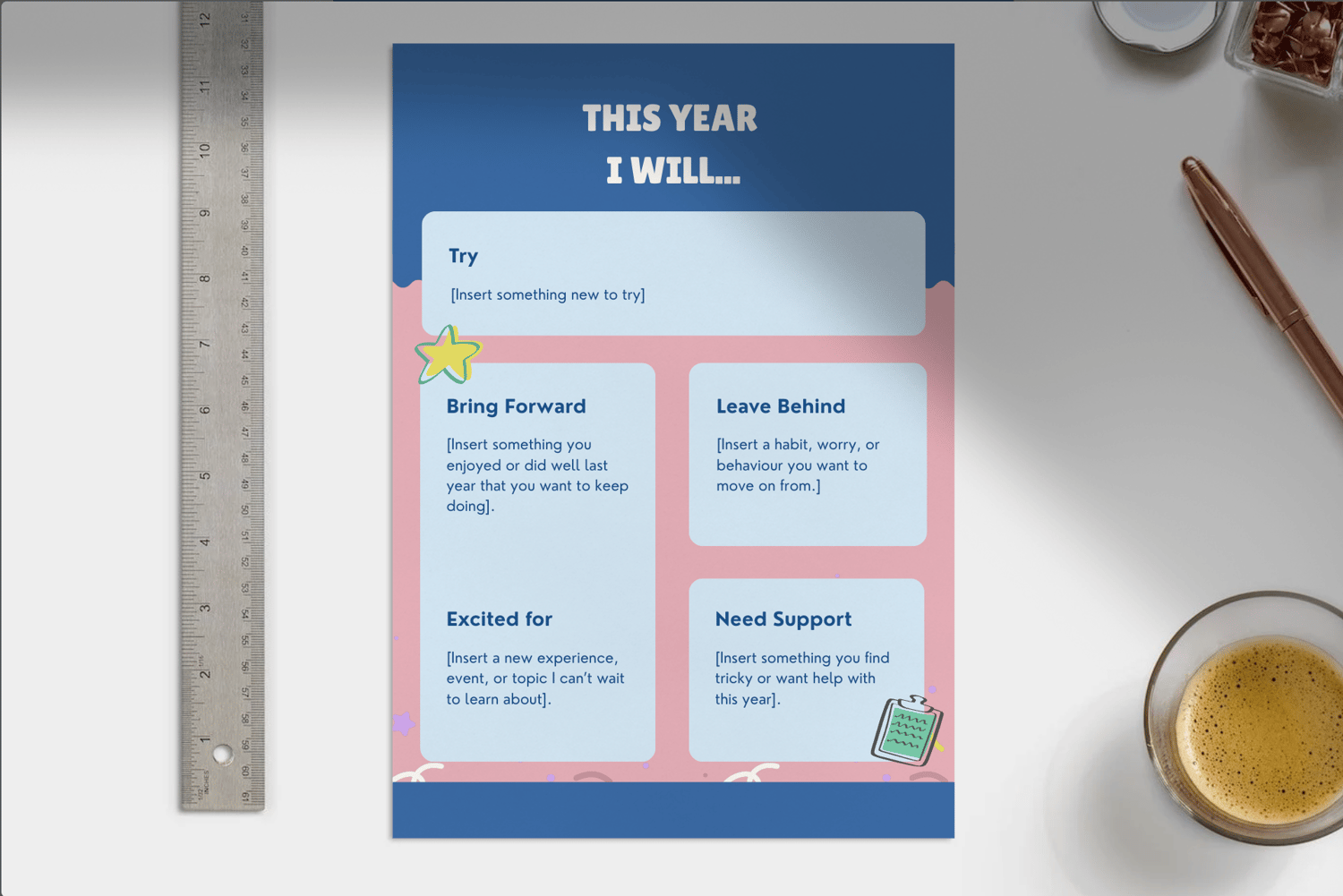 Help learners set meaningful intentions for the year ahead! 🌱 This thoughtful reflection template covers what to bring forward from last year, what to leave behind, what they're excited about, and where they need support. Perfect for goal-setting discussions, new term activities, and building learner self-awareness ✨