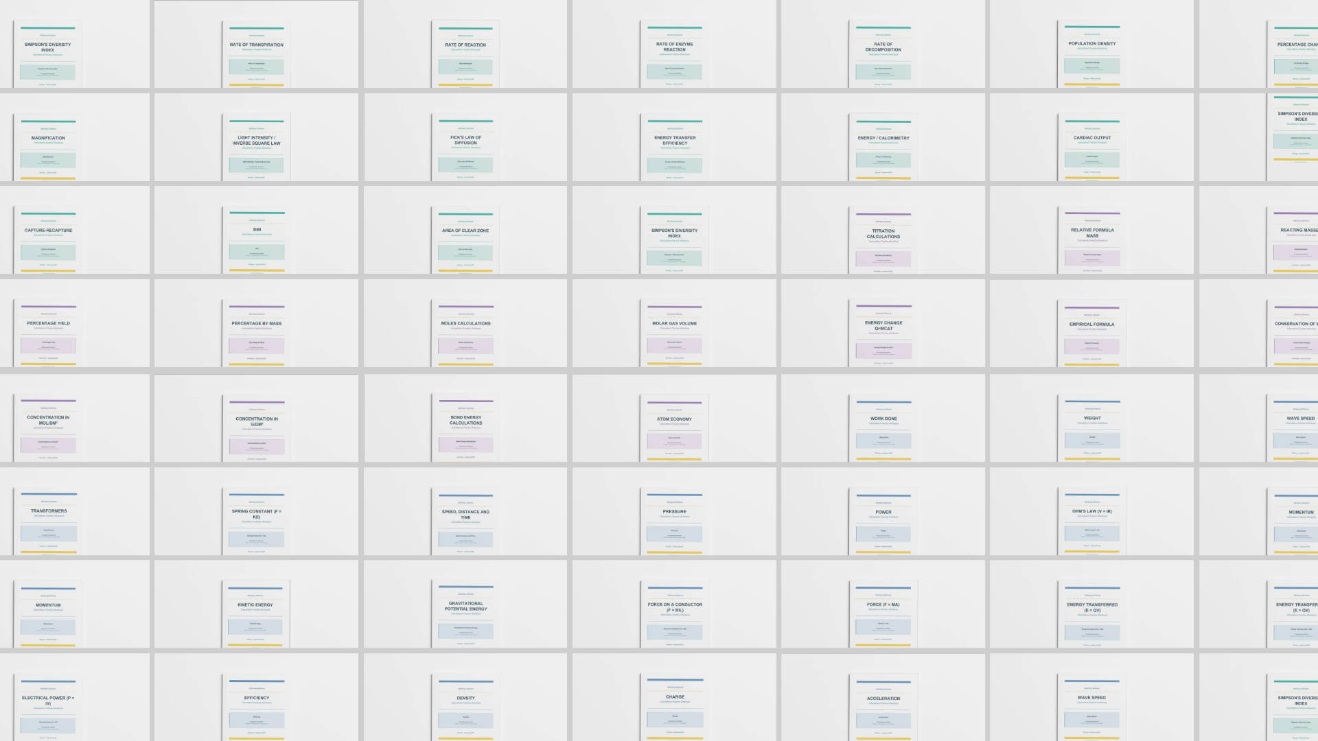 The ultimate GCSE Science calculations resource - 50 workbooks covering every equation across Biology, Chemistry and Physics.
