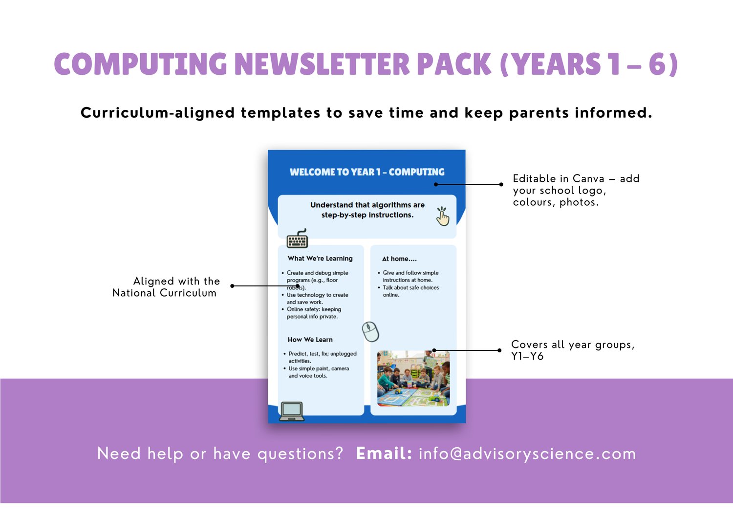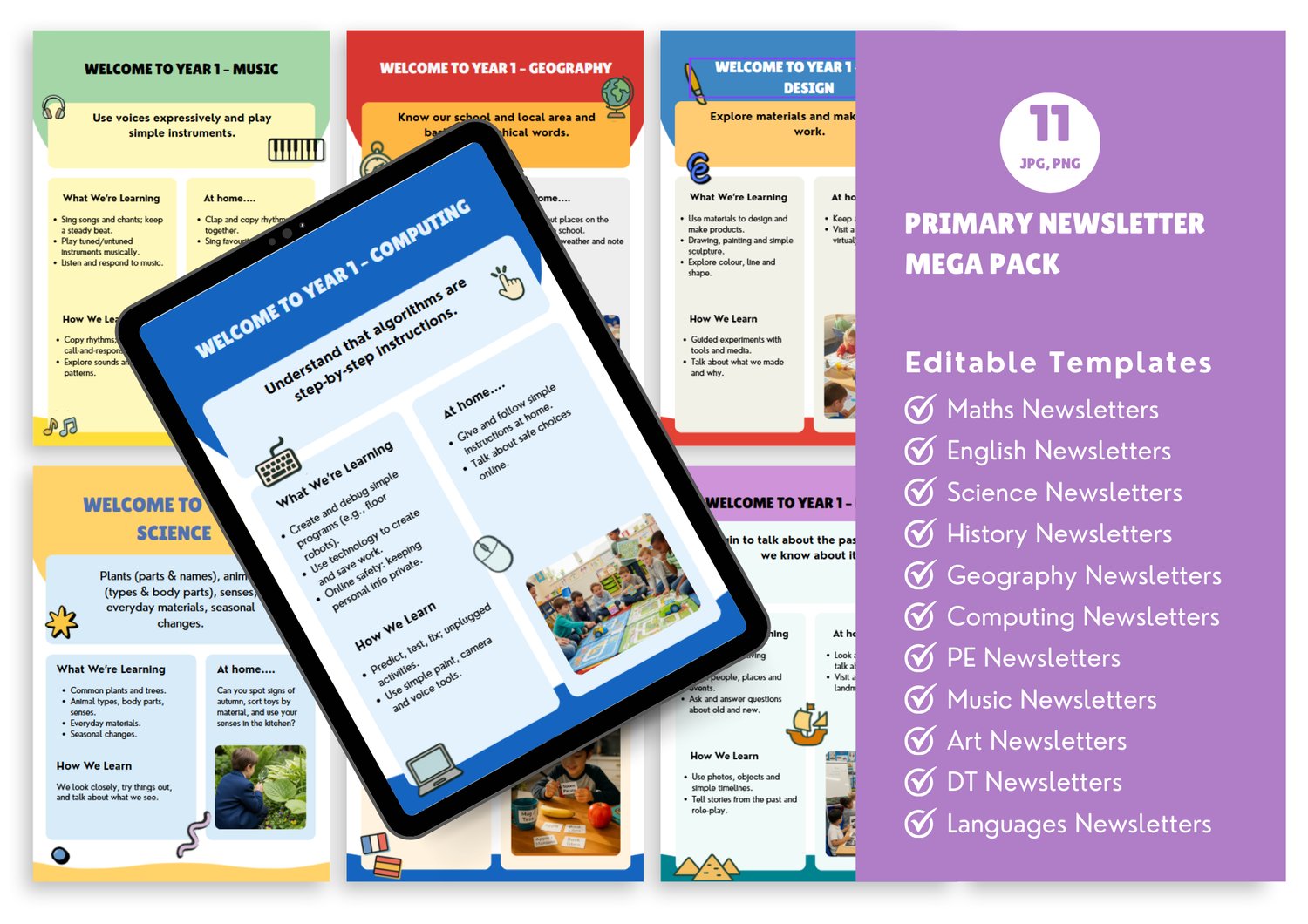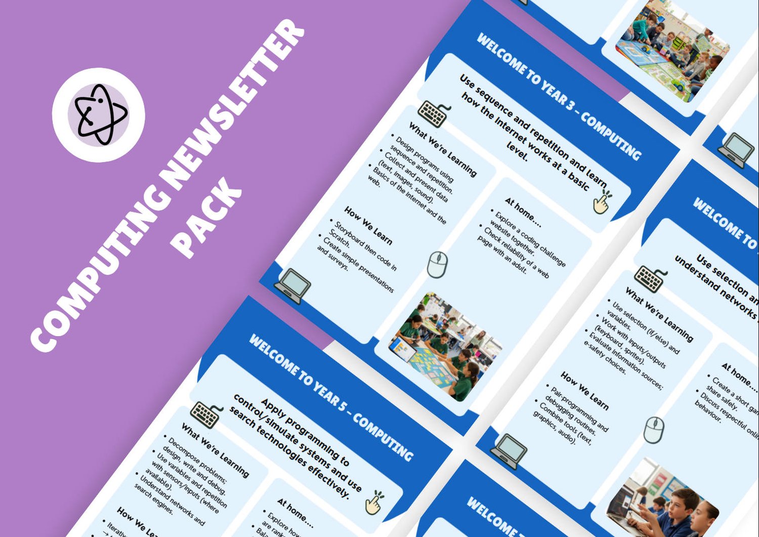 A complete Computing curriculum overview from Year 1 to Year 6, formatted as professional parent-facing newsletters. Each year group gets a clear summary of topics, skills and vocabulary their children will cover. Fully editable so you can adapt to your school's curriculum sequence. Reduces parent queries and demonstrates curriculum transparency for Ofsted. Created by an award-winning educator trusted by 100+ schools.