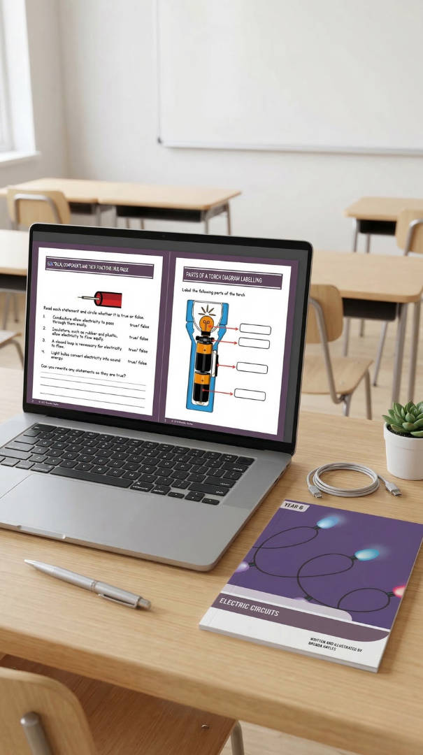 Save with this bundle combining the Year 6 Electrical Circuits Knowledge Booklet and Workbook. The booklet contains all the knowledge pupils need for this topic, written clearly and accessibly. The workbook contains questions based directly on the booklet, helping pupils apply and consolidate what they've learned. Ideal for classroom use or home learning.