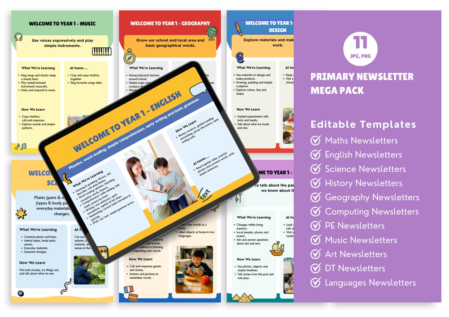 A complete English curriculum overview from Year 1 to Year 6, formatted as professional parent-facing newsletters. Each year group gets a clear summary of topics, skills and vocabulary their children will cover. Fully editable so you can adapt to your school's curriculum sequence. Reduces parent queries and demonstrates curriculum transparency for Ofsted. Created by an award-winning educator trusted by 100+ schools.