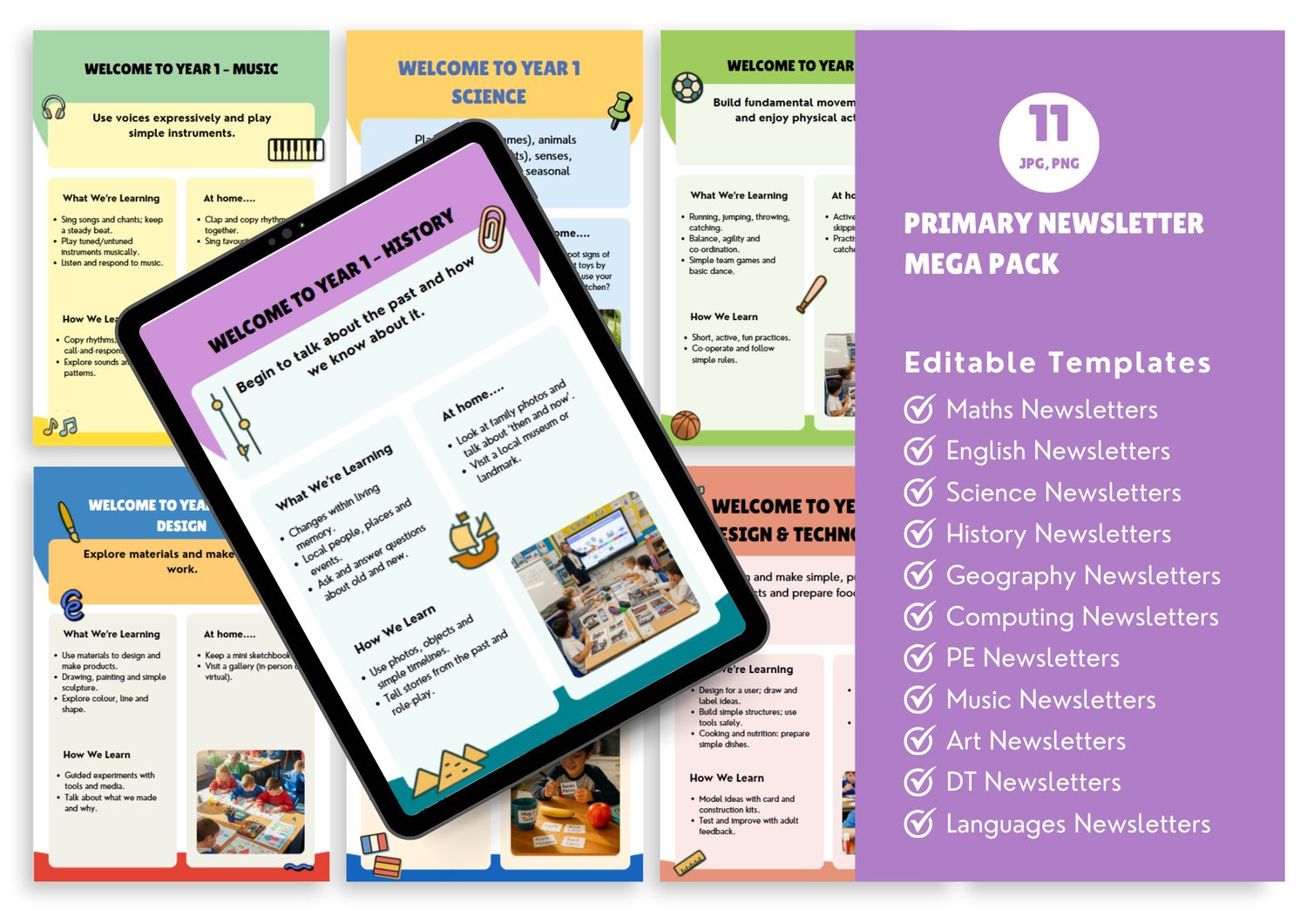 A complete History curriculum overview from Year 1 to Year 6, formatted as professional parent-facing newsletters. Each year group gets a clear summary of topics, skills and vocabulary their children will cover. Fully editable so you can adapt to your school's curriculum sequence. Reduces parent queries and demonstrates curriculum transparency for Ofsted. Created by an award-winning educator trusted by 100+ schools.