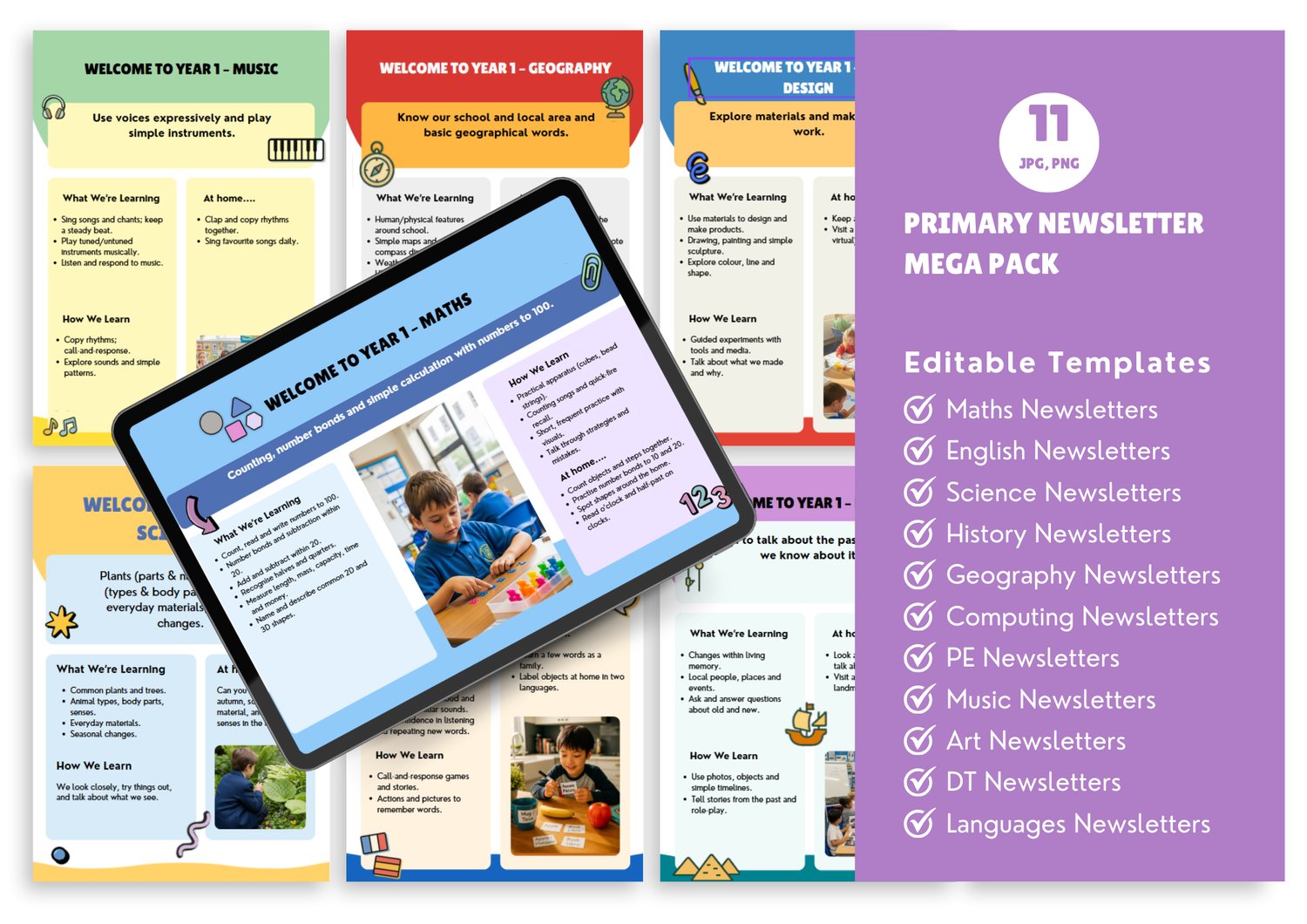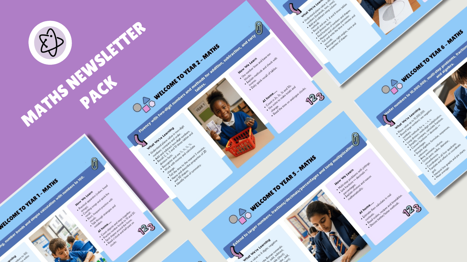 A complete Maths curriculum overview from Year 1 to Year 6, formatted as professional parent-facing newsletters. Each year group gets a clear summary of topics, skills and vocabulary their children will cover. Fully editable so you can adapt to your school's curriculum sequence. Reduces parent queries and demonstrates curriculum transparency for Ofsted. Created by an award-winning educator trusted by 100+ schools.